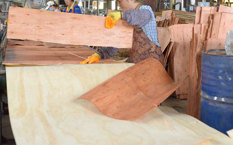 建筑模板流水線,可以看流水線上每次芯板的質量,避免用洞板或者毛皮做為芯板,用整芯板結構穩定,質量可靠。用碎心板的成本低,質量差,成品板會有很多的空隙,雨水灌進去會造成大面積脫膠。